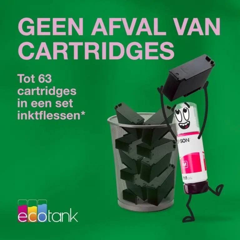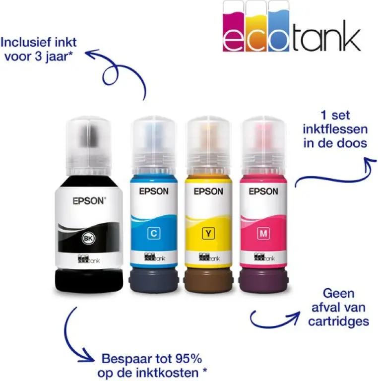 Met de innovatieve EcoTank inkttanks bespaar je flink op inktkosten. Je krijgt een set inktflessen mee die gelijk staat aan maar liefst 72 cartridges, waardoor je tot drie jaar vooruit kunt zonder bij te vullen. De navulbare tanks zijn slim ontworpen om knoeien te voorkomen en het inktniveau is altijd duidelijk zichtbaar via het display aan de voorkant.