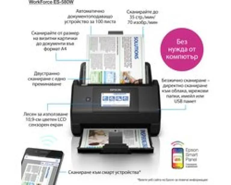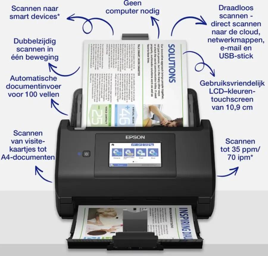 | Model | Epson WorkForce ES-580W, A4 automatische duplexscanner met Wi-Fi en gebruiksvriendelijk touchscreen |