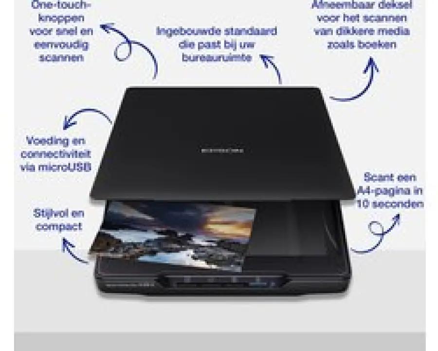 Deze flatbed scanner kan niet alleen standaard documenten en foto's scannen, maar dankzij de ingebouwde klep voor boeken en de meegeleverde filmhouder ook 3D-objecten en films digitaliseren. Zo heb je volop mogelijkheden om allerlei materialen te scannen zonder gedoe.