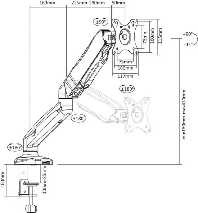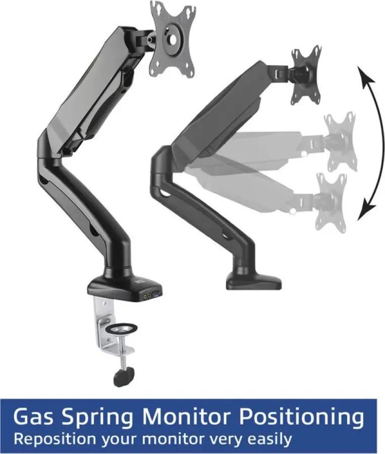 Met de keuze uit een bureauklem of doorvoermontage bevestig je de AC8311 stevig aan je bureau. Dit bespaart ruimte en houdt je werkplek netjes. De monitorarm wordt compleet geleverd met alle montagemiddelen die je nodig hebt, zodat je hem zonder gedoe kunt installeren.