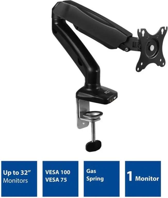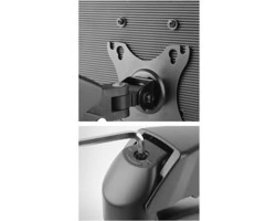 Deze monitorsteun ondersteunt VESA-maten van 75x75 en 100x100, waardoor hij geschikt is voor de meeste gangbare beeldschermen. Het handige beeldschermmontagesysteem zorgt ervoor dat je de monitor snel en veilig aan de steun bevestigt.