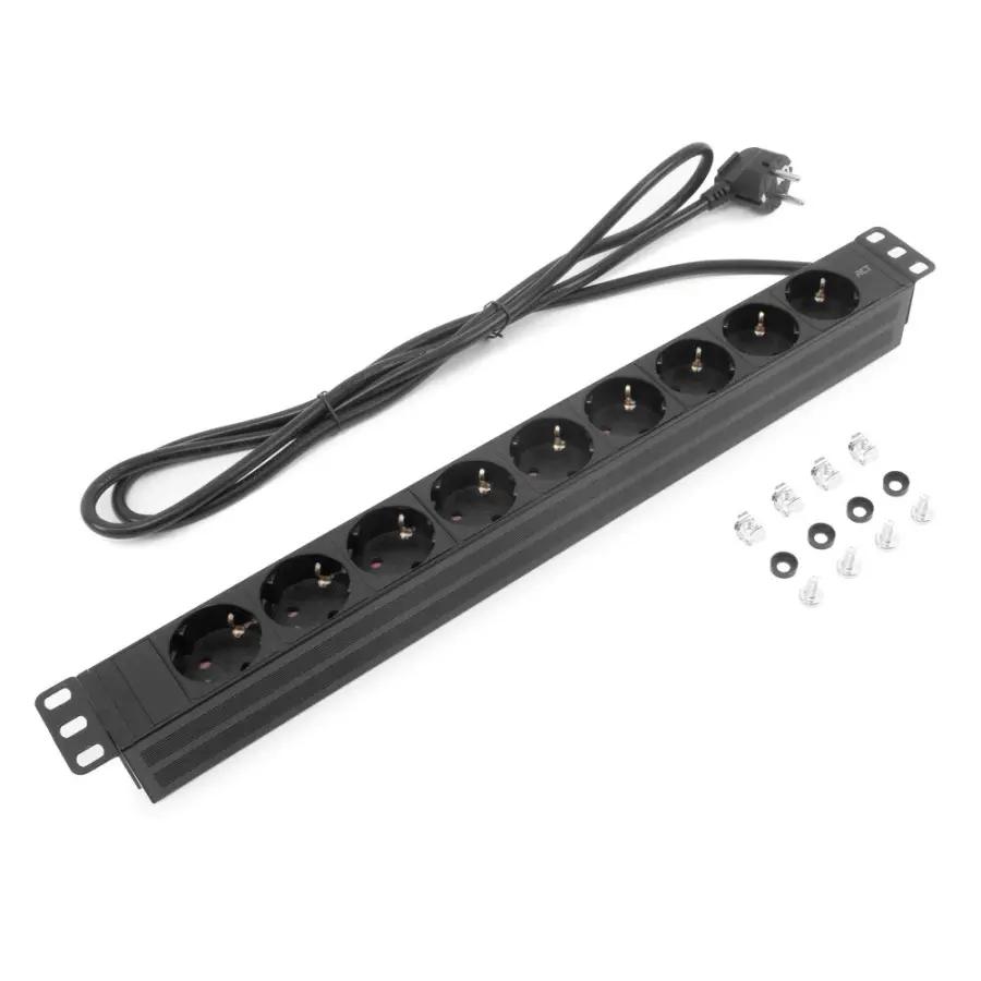 Met de ACT PD3002 stekkerdoos PDU breid je jouw power management uit met maar liefst negen geaarde type F stopcontacten. Deze stopcontacten zijn slim geplaatst onder een hoek van 45° en voorzien van kinderbeveiliging, zodat je veilig en efficiënt meerdere apparaten tegelijk kunt aansluiten zonder gedoe.