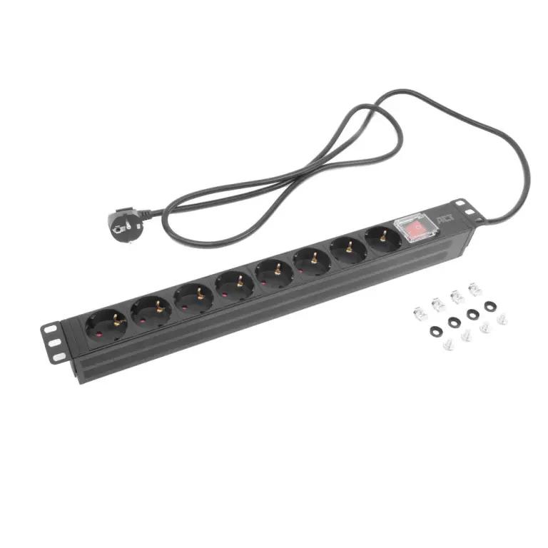 Deze stekkerdoos past precies in een 1HE 19 inch serverrack, waardoor je je ruimte optimaal benut zonder gedoe. Met een snoerlengte van 2,5 meter en een stevige H05VV-F 3G1.5 kabel met CEE7/7 stekker, verbind je je apparatuur zonder beperkingen.