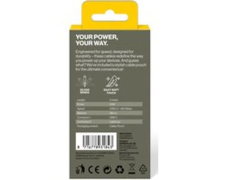 Deze USB-C Lightning kabel wordt geleverd met een handige pouch, zodat je hem eenvoudig kunt opbergen en meenemen. Bovendien is de verpakking volledig plasticvrij en gemaakt van 100% papier, wat beter is voor het milieu.