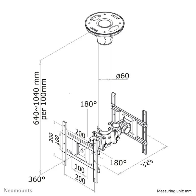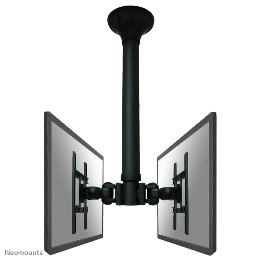 Met de Neomounts FPMA-C200D plafondsteun monteer je eenvoudig twee flatscreens aan het plafond. Ideaal als je ruimte op je bureau of vloer wilt besparen en toch flexibel wilt kunnen werken of ontspannen. Deze beugel ondersteunt schermen van 10 tot 40 inch, perfect voor zowel monitoren als kleinere televisies.