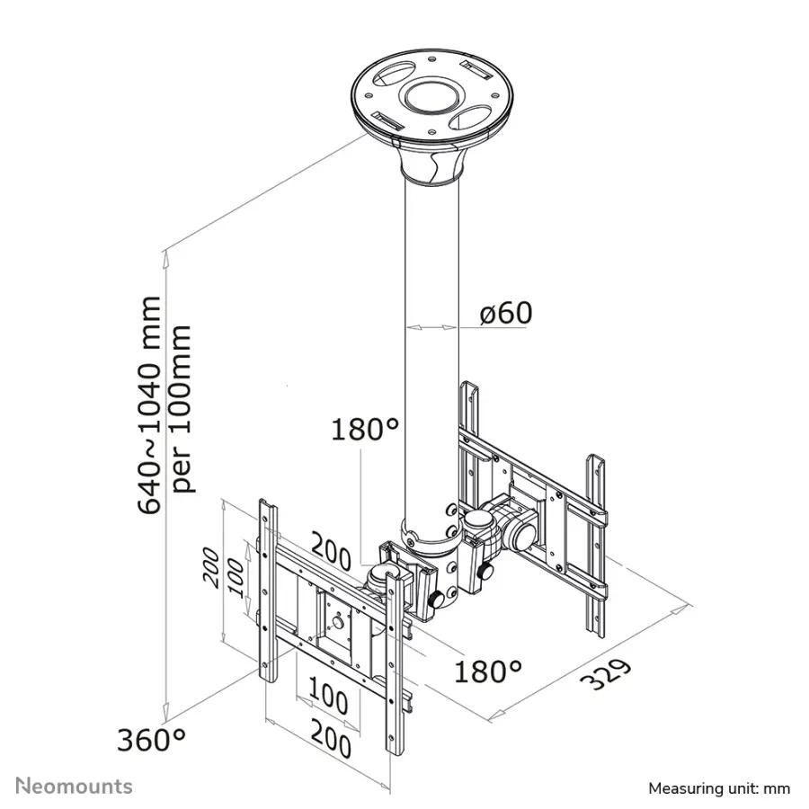 De hoogte van de FPMA-C200D is handmatig verstelbaar tussen 64 en 104 cm. Zo bepaal je zelf hoe hoog je schermen hangen, wat zorgt voor een ergonomische werkhouding en minder nek- en rugklachten. Wil je de schermen nog hoger plaatsen? Dan kun je eenvoudig een langere buis (FPMA-CP100 tot FPMA-CP200) erbij bestellen om de afstand tot het plafond te vergroten.