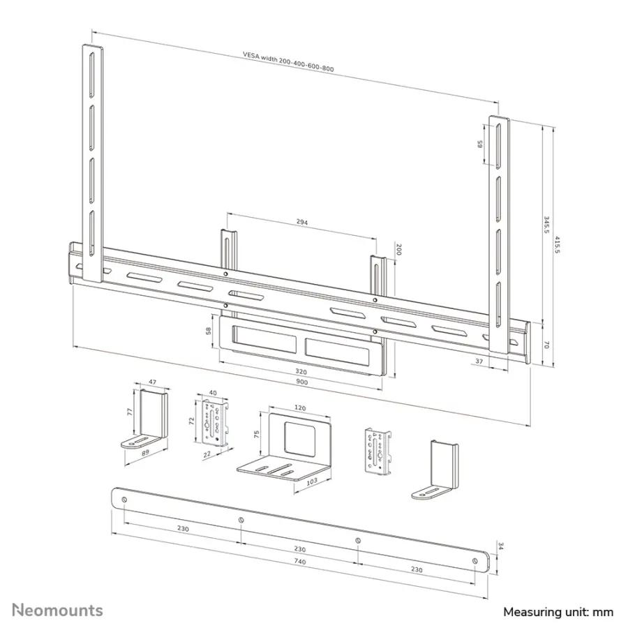 De Neomounts AV2-500WH is speciaal ontworpen voor schermen van minimaal 43" tot maar liefst 110" met een VESA gatenpatroon van 200x200 tot 800x600 mm. Deze kit is super stevig en stabiel, ideaal voor het veilig monteren van jouw videobar, PTZ-camera of soundbar met een maximaal gewicht van 10 kg.