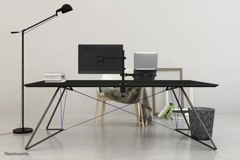 Met de NEOMOUNTS FPMA-D550NOTEBOOK bevestig je eenvoudig een flatscreen en notebook aan je bureau. Je kunt kiezen tussen een bureauklem of bladdoorvoer, zodat de arm stevig en stabiel zit. Deze monitor- en laptoparm is geschikt voor schermen tot 32 inch en notebooks tot 15,6 inch, waardoor hij breed inzetbaar is voor jouw werkplek.