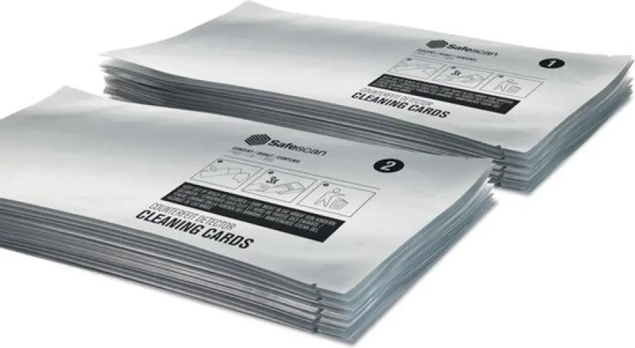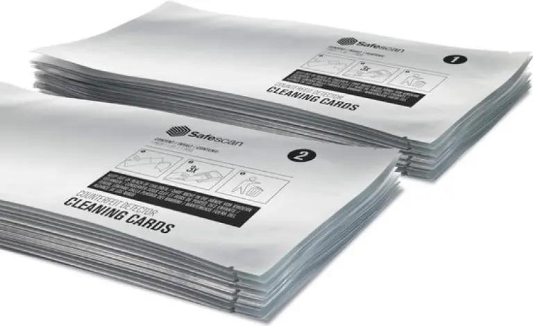 De kit bevat twee verschillende soorten cleaning cards die je eenvoudig door de teller voert, net als een bankbiljet. De cards reinigen de magneetkoppen en sensoren aan de oppervlakte van het detectiemechanisme, รฉn het transportmechanisme. Zo ben je verzekerd van een grondige schoonmaakbeurt die het hele systeem meeneemt.