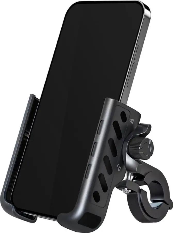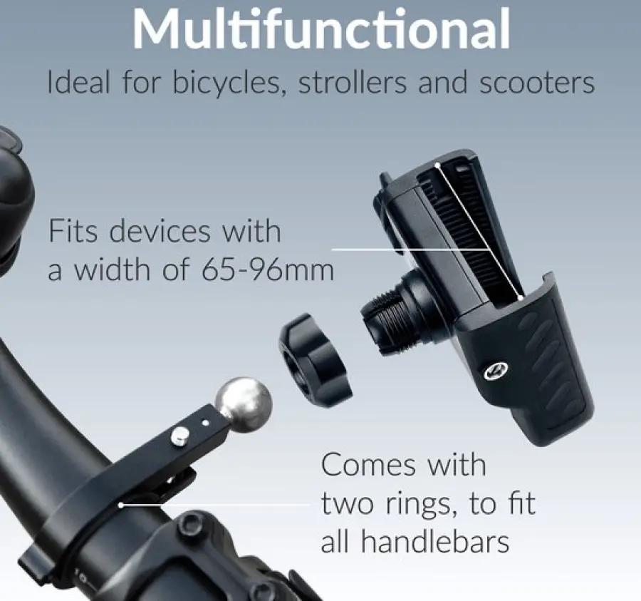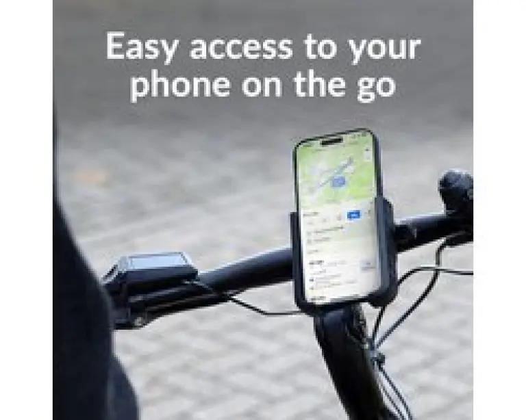 De houder is uitgevoerd in een tijdloos zwart design dat overal bij past. Het compacte formaat zorgt ervoor dat hij niet in de weg zit en toch stevig genoeg is om je telefoon goed vast te houden. Perfect voor dagelijks gebruik, of je nu een korte rit maakt of een lange fietstocht plant.