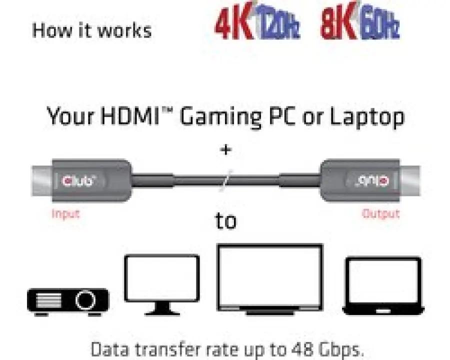 Met de Club3D CAC-1379 HDMI 2.1 kabel haal je een krachtige kabel in huis die geschikt is voor de nieuwste schermen en apparaten. Dankzij de 20 meter kabellengte verbind je gemakkelijk je tv, monitor of projector zonder concessies te doen aan de beeldkwaliteit. Of je nu een filmavond organiseert of gamet, deze kabel ondersteunt resoluties tot 8K bij 60 Hz en 4K bij 120 Hz, waardoor je geniet van haarscherpe en vloeiende beelden.