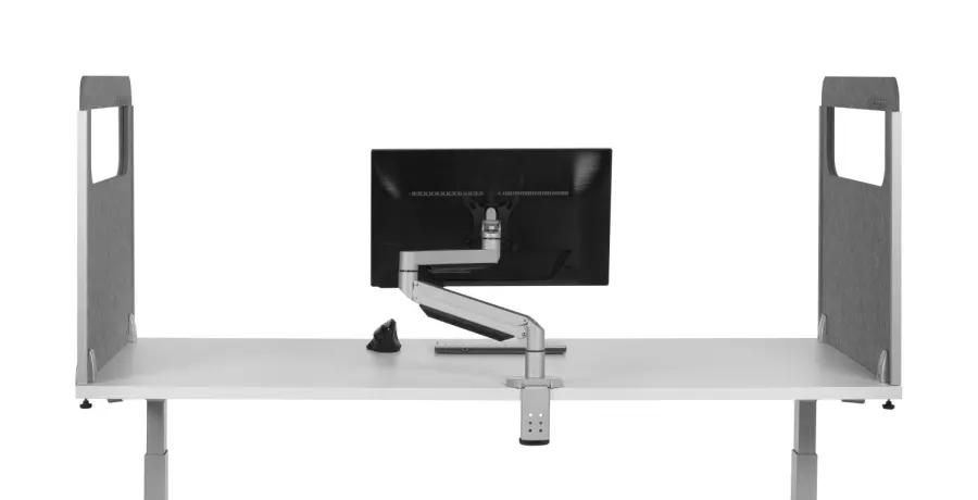 Het PET-vilt heeft een hoge geluidsabsorptie (klasse B), waardoor het omgevingsgeluid aanzienlijk wordt verminderd. Dit maakt het scherm ideaal voor drukke kantoorruimtes en open werkomgevingen waar geluid anders snel afleidt. Het resultaat? Een stillere werkplek waar je makkelijker in de zone komt en blijft.