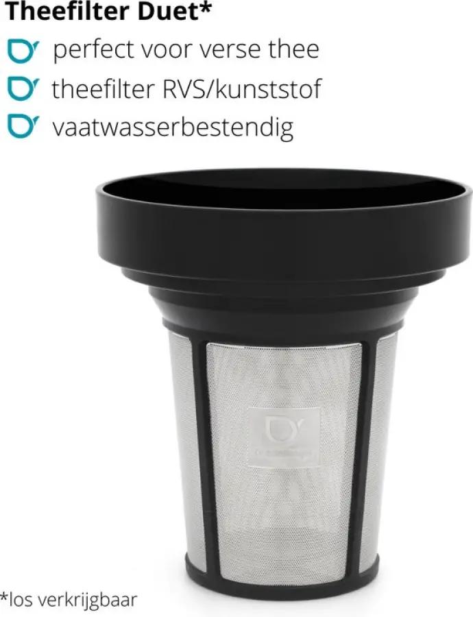 Wil je verse thee of kruiden toevoegen? Er is een bijpassend fijnmazig theefilter van RVS en kunststof los verkrijgbaar, geschikt voor alle theesoorten en gemakkelijk schoon te maken in de vaatwasser. Let op: de theepot wordt exclusief filter geleverd. De Bella Ronde is niet geschikt voor de vaatwasser zelf, maar eenvoudig schoon te maken met de hand.