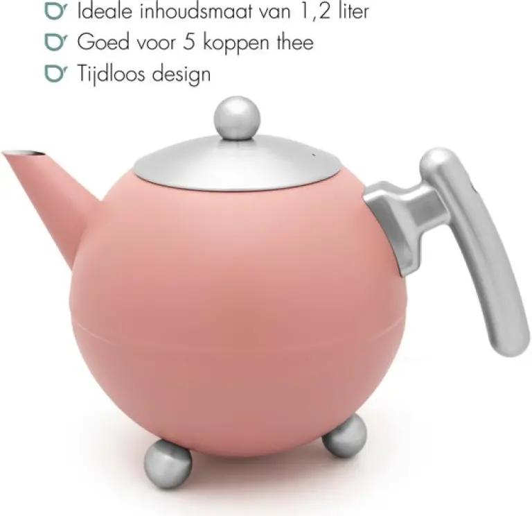 De Bredemeijer Bella Ronde 101014 is een echte klassieker die in veel keukens niet mag ontbreken. Deze theepot met een inhoud van 1,2 liter is perfect voor het zetten van zes koppen thee. Met zijn vrolijke roze kleur en ronde vorm geeft hij niet alleen warmte aan je thee, maar ook aan je tafel.