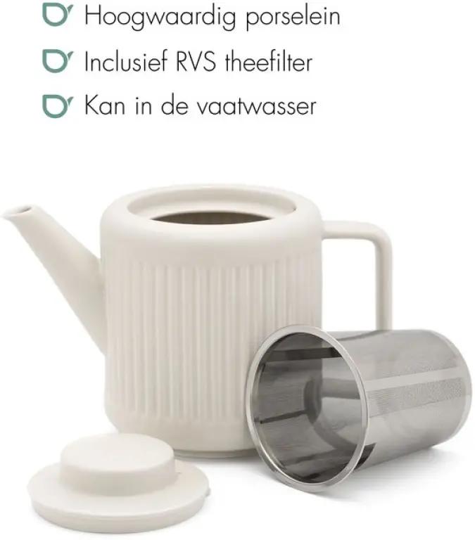 De theepot is gemaakt van porselein en is volledig vaatwasserbestendig, wat het schoonmaken eenvoudig maakt. Let wel, het product is breekbaar en vraagt dus een beetje zorgvuldigheid. Het materiaal is BPA-vrij, wat een gezonde keuze is voor jouw thee-ervaring. Daarnaast geldt er een fabrieksgarantie van 2 jaar, wat vertrouwen geeft in de duurzaamheid van dit product.