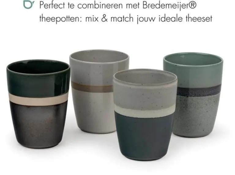 Deze set van 4 theemokken van Bredemeijer heeft een prachtig streepdesign met een subtiel kleurverloop. De mokken zijn uitgevoerd in keramiek en hebben een inhoud van 200 ml, perfect voor jouw favoriete thee of espresso. Het stijlvolle design maakt ze een mooie aanvulling op de theepotten uit de Bredemeijer collectie, zodat je een complete en sfeervolle theeset hebt.