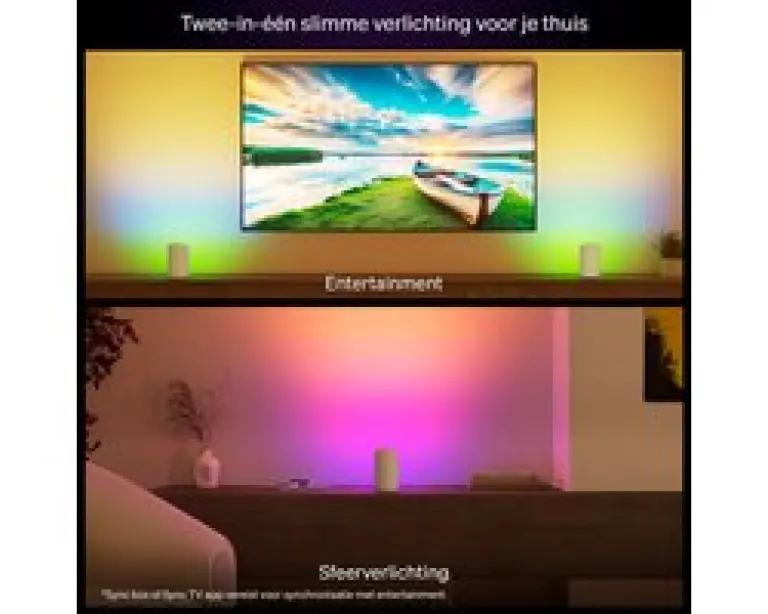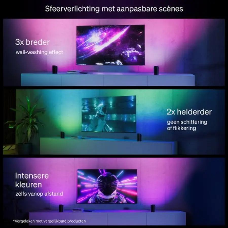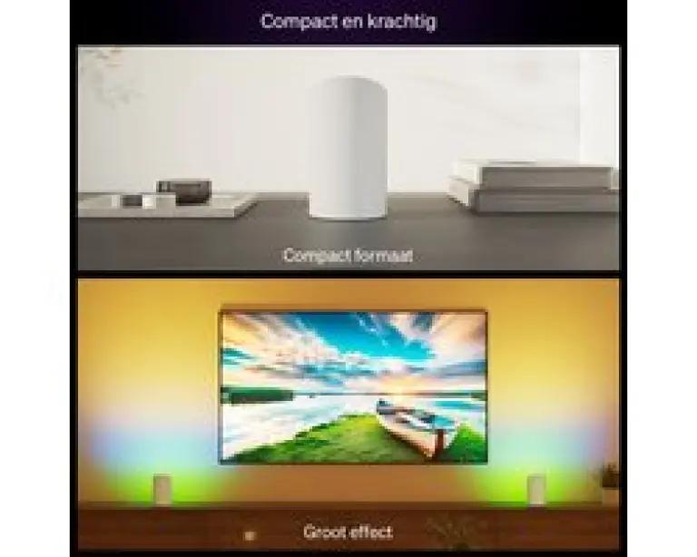 De Philips Hue Play wall washer is jouw perfecte partner voor sfeervolle en kleurrijke verlichting. Dankzij het compacte ontwerp en het brede stralende lichteffect creëer je eenvoudig een unieke ambiance in je woonkamer, gamekamer of thuisbioscoop. De lampen laten meerdere kleuren tegelijk vloeiend in elkaar overlopen, wat zorgt voor een opvallend en dynamisch lichtspel dat je helemaal onderdompelt in jouw favoriete entertainment.