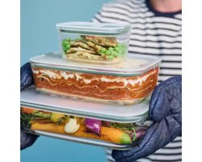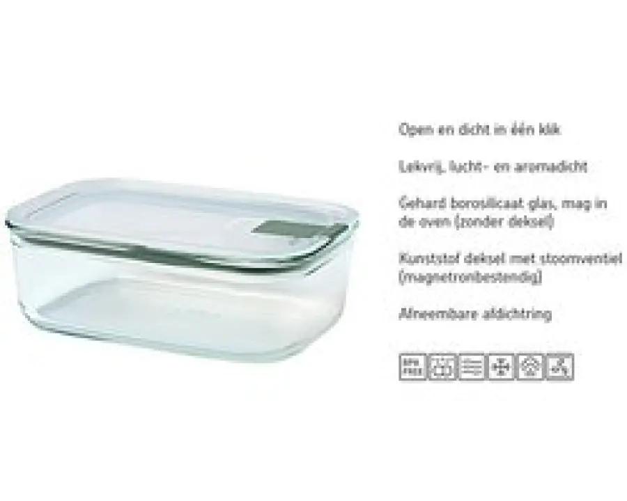 Deze glazen ovenschaal is ideaal voor meal preppen, bewaren en opwarmen. Je kunt het bakje zonder deksel in de oven plaatsen, en met het unieke stoomventiel op de clip open, is hij ook geschikt voor de magnetron en stoomoven. Na het opwarmen serveer je je gerecht gewoon direct uit de schaal. De EasyClip is daarnaast geschikt voor in de vriezer en kan probleemloos in de vaatwasser, wat schoonmaken makkelijk maakt. Dit alles in een compact en stapelbaar design dat je koelkast en vriezer netjes houdt.