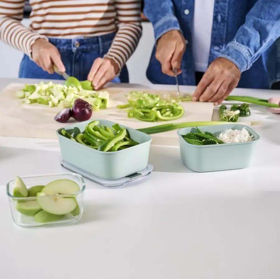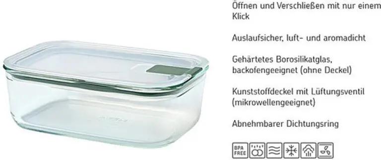 De Mepal EasyClip glazen vershouddoos met een inhoud van 1000 ml in de trendy kleur Nordic sage is een must-have in elke keuken. Dankzij het stevige, geharde borosilicaatglas kun je deze vershouddoos moeiteloos gebruiken in de oven tot wel 550°C. De transparante deksel laat je meteen zien wat er in zit, waardoor je snel je maaltijden terugvindt. Met één klik is het bakje lek- en luchtdicht afgesloten, zodat je eten vers blijft en geurtjes geen kans krijgen.