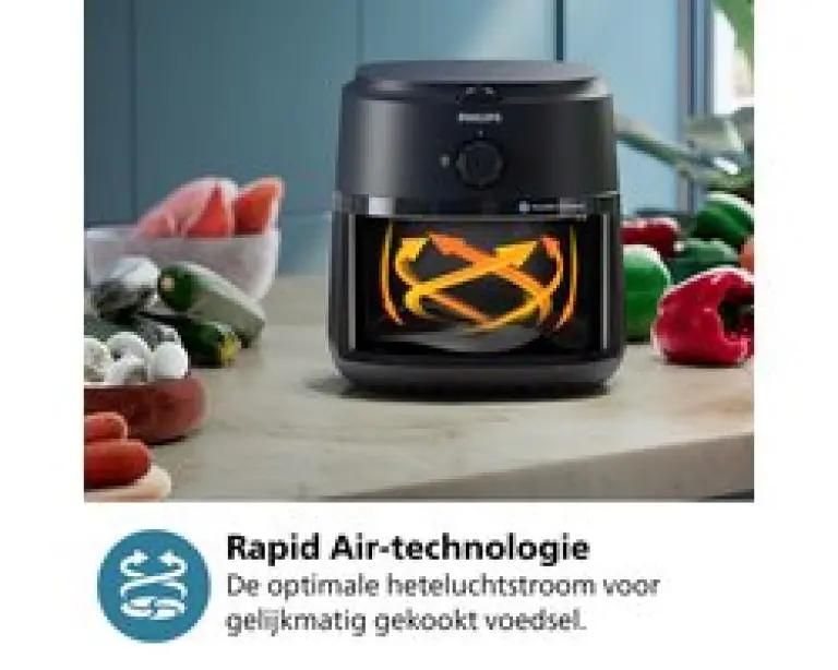 Maak kennis met de RapidAir-technologie, het geheim achter de smaak en de gezonde bereiding van jouw favoriete gerechten. Deze geavanceerde technologie maakt gebruik van een krachtige luchtstroom om warmte gelijkmatig te verdelen rondom jouw voedsel. Het resultaat? Knapperige lekkernijen die mals blijven van binnen, zonder overmatig gebruik van olie.