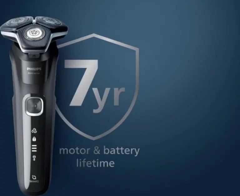 De SteelPrecision-mesjes en Hair-Guide precisiescheerhoofden zorgen voor een nauwkeurige scheerbeurt. De uitklapbare trimmer is ideaal voor het bijwerken van bakkebaarden en snorren. Bovendien kun je het scheerhoofd met één druk op de knop openen voor eenvoudige reiniging onder de kraan, omdat het apparaat volledig spoelbaar is.