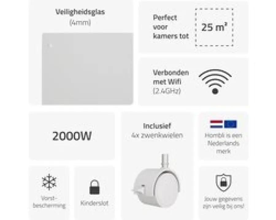 Hombli HBCH-0309 - Smart Convectorkachel - 2000W Vermogen - Wit - Muurmontage & Mobiel