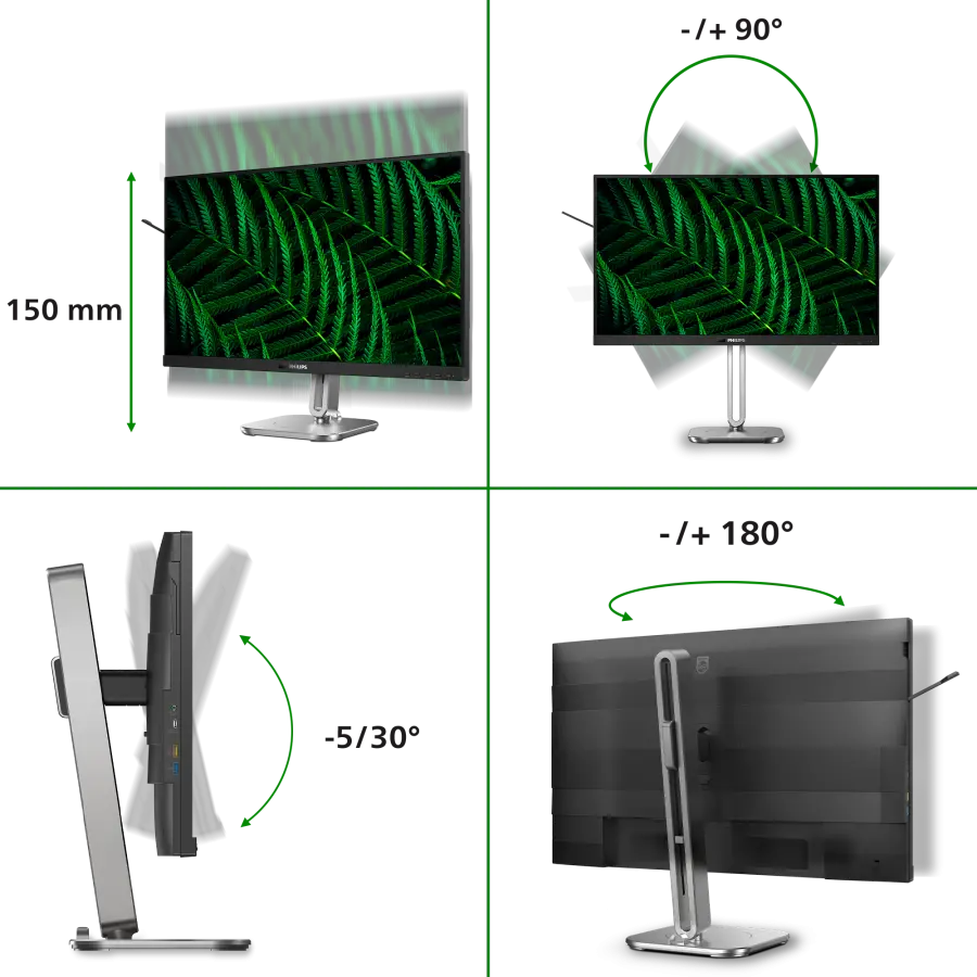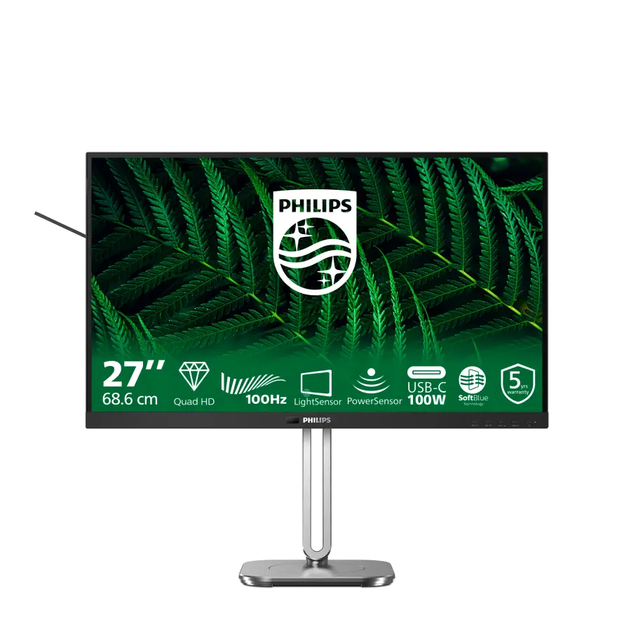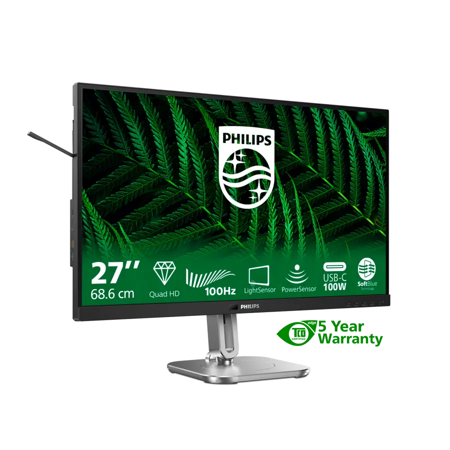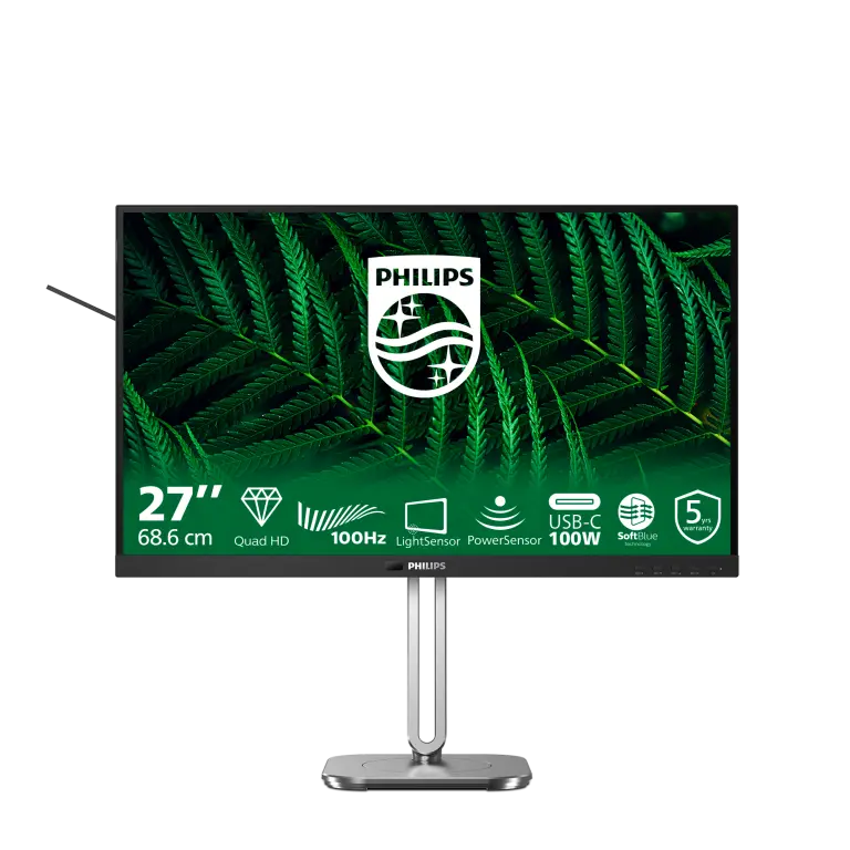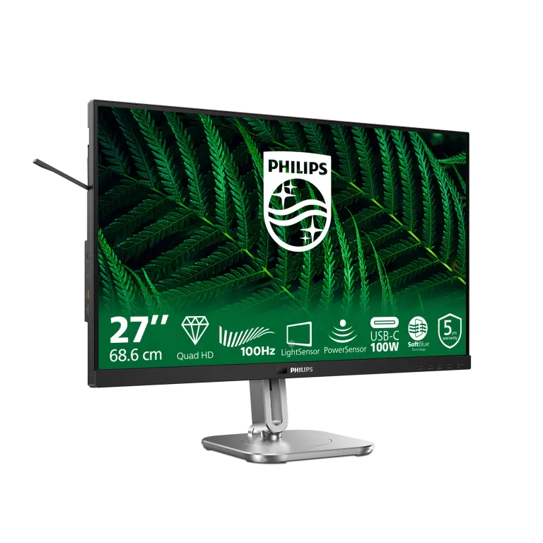 De Philips 27B2G5601/00 monitor heeft een scherp 27 inch (68,6 cm) scherm met een indrukwekkende Quad HD-resolutie van 2560 x 1440 pixels. Dankzij het IPS-paneel geniet je van een brede kijkhoek van 178° horizontaal en verticaal en een kleurrijk beeld met 16,7 miljoen kleuren. Of je nu werkt, streamt of gamet, elk detail komt haarscherp en levendig in beeld.