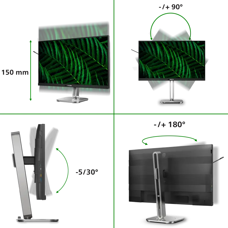 Met een verstelbare hoogte van maximaal 15 cm, kantel- en draaibaarheid tot 180°, pas je het scherm moeiteloos aan jouw ideale kijkpositie aan. De ingebouwde USB-hub (versie 3.2 Gen 2) met USB Type-C en meerdere USB Type-A poorten maakt het eenvoudig om al je apparaten aan te sluiten. Bovendien ondersteunt de USB Power Delivery tot 15W, zodat je bijvoorbeeld je laptop direct kunt opladen via de monitor.