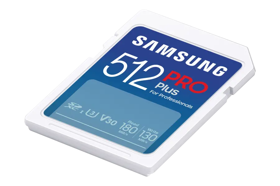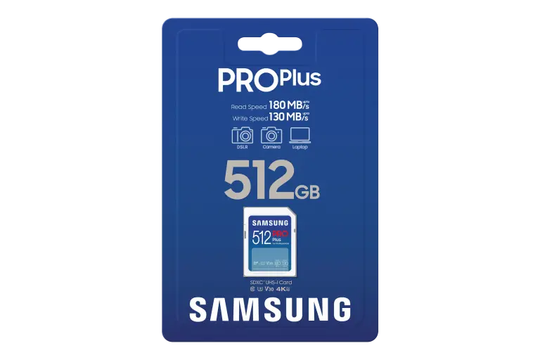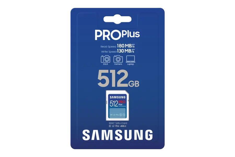 De Samsung PRO Plus SD Geheugenkaart 512 GB is ontworpen voor professionals die hoge prestaties en betrouwbaarheid eisen. Met een ruime opslagcapaciteit van 512 GB voeg je moeiteloos extra ruimte toe aan je DSLR, spiegelloze camera, pc of andere apparaten.
