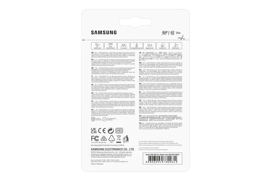 Samsung is sinds 2003 het nummer 1 merk in flashgeheugen wereldwijd. Met deze SD-kaart krijg je bovendien 10 jaar beperkte garantie, wat je extra zekerheid geeft voor langdurig gebruik.