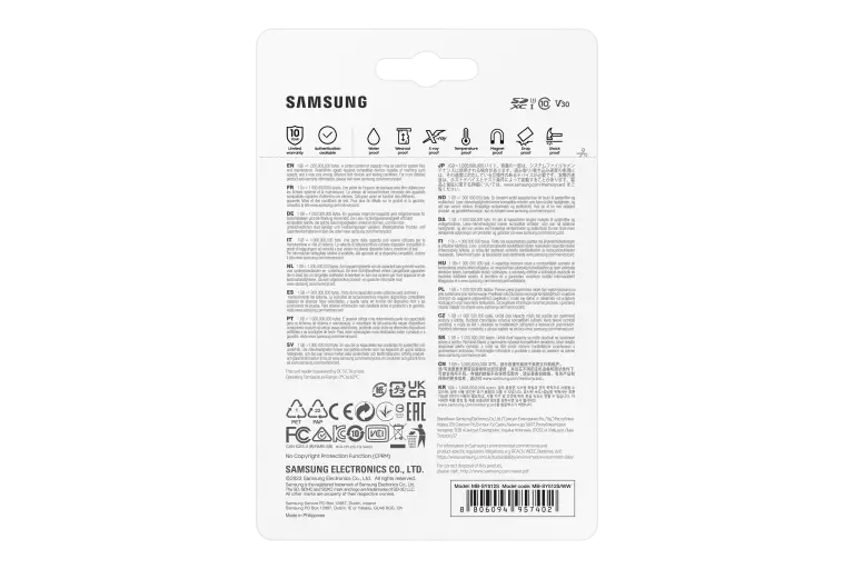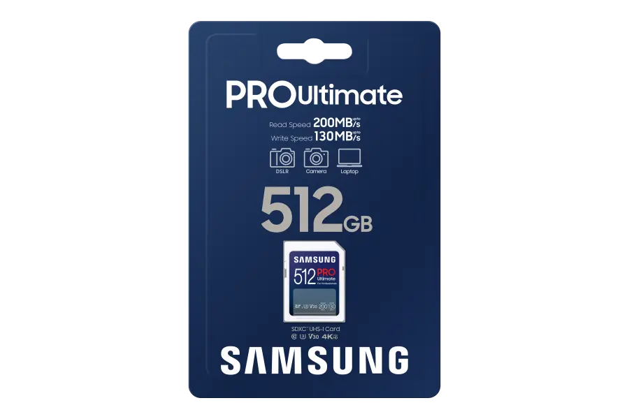 De Samsung PRO Ultimate SD-kaart is ontworpen om te presteren onder alle omstandigheden. Dankzij 7-voudige bescherming is hij waterdicht, schokbestendig, temperatuurbestendig, röntgenbestendig, magneetbestendig, valbestendig en slijtvast. Zo kun je zorgeloos je creatieve werk doen, waar je ook bent.