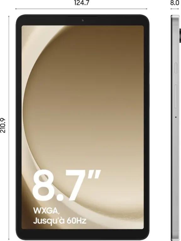 De Samsung Galaxy Tab A9 X110 is een tablet met een relatief klein 8.7 inch scherm, ideaal als je een handzaam apparaat zoekt dat makkelijk mee te nemen is. Het zilveren ontwerp heeft een zachte textuur aan de achterkant, wat zorgt voor een comfortabele grip en eenvoudige bediening, waar je ook bent.