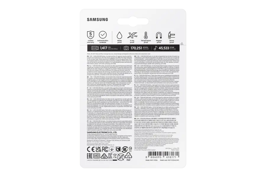 Met de Samsung MUF-512DA4/APC USB-C flashdrive met 512 GB opslagruimte heb je altijd genoeg plek voor je belangrijke documenten, foto's en video's. Dankzij de snelle USB 3.2 Gen 1 interface haal je leessnelheden tot 400 MB/s en schrijfsnelheden tot 110 MB/s. Dat betekent dat een bestand van 4 GB in ongeveer 11 seconden naar je computer wordt gekopieerd. Zo ben je altijd razendsnel klaar.