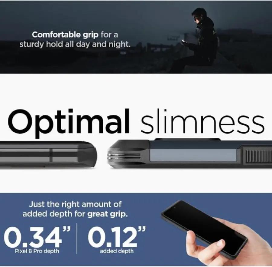 De SPIGEN Tough Armor is speciaal ontworpen voor jouw Google Pixel 8 Pro en biedt optimale bescherming zonder onnodig volume of gewicht toe te voegen. Dit hoesje bestaat uit drie lagen: TPU, hard plastic en impact foam aan de binnenzijde. Dankzij de combinatie van deze materialen en de Air Cushion technologie wordt jouw telefoon uitstekend beschermd tegen vallen, stoten en krassen.