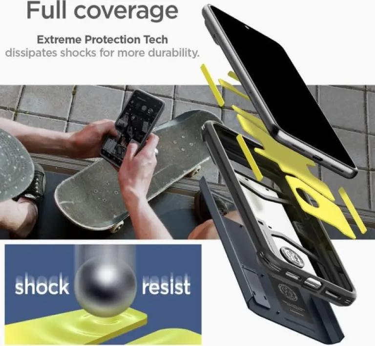 De SPIGEN Tough Armor is eenvoudig te monteren en blijft stevig zitten om je telefoon. Ondanks de robuuste bescherming voelt het hoesje licht en compact aan, zodat je telefoon lekker in de hand ligt of makkelijk in je zak past. Door het grijze ontwerp krijgt je telefoon een stijlvolle en moderne uitstraling zonder poespas.