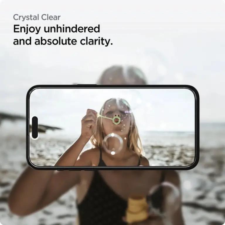 Met de Spigen AlignMaster Full Cover Glass voor de Apple iPhone 15 Pro zorg je voor optimale bescherming van het scherm. Deze screenprotector is gemaakt van 9H gehard glas, wat betekent dat het sterk bestand is tegen krassen en stoten. Zo blijft het scherm van je telefoon onbeschadigd, ook bij dagelijks gebruik.