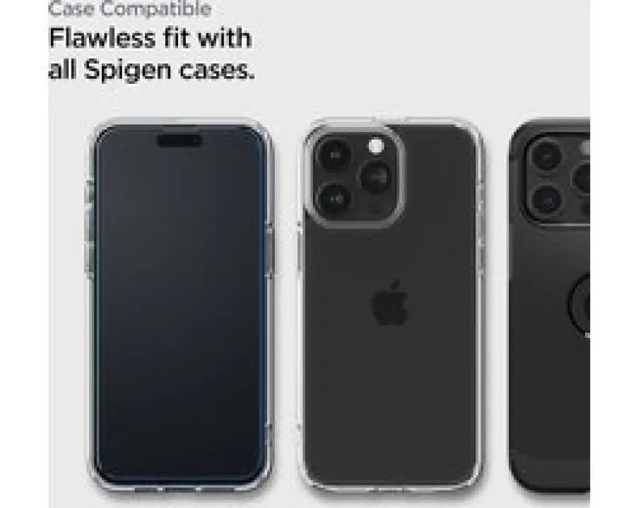 De screenprotector wordt geleverd met een montage frame dat je helpt om de protector altijd precies binnen de lijntjes te plaatsen. Hierdoor hoef je niet te worstelen met schuine of verkeerd geplaatste schermbeschermers. Dit frame maakt het ook mogelijk om de screenprotector te combineren met een Spigen hoesje voor de Apple iPhone 15 Pro.