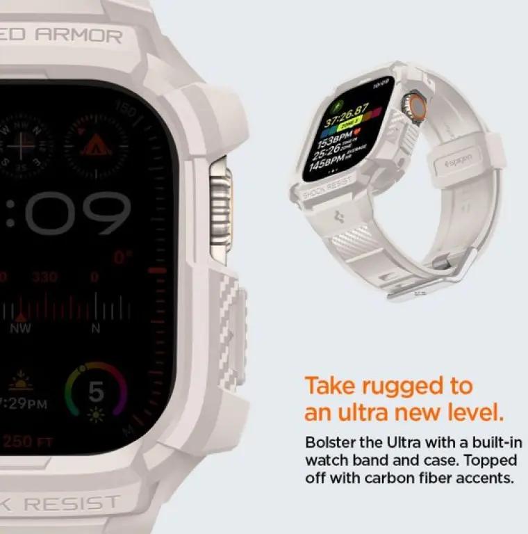 De Spigen Rugged Armor Pro is de ideale combinatie van stijl en verdediging. De full protect case is gemaakt van TPU en beschermt tegen dagelijkse schade als krassen en vallen door de flexibele en schokabsorberende werking. Verhoogde randen zorgen voor een verbeterde bescherming van de Apple Watch Ultra / Ultra 2 display. De matte afwerking met accenten zorgt voor een moderne uitstraling. De verstelbare polsband met veilige metalen sluiting zorgt voor een nauwsluitende pasvorm om je pols.