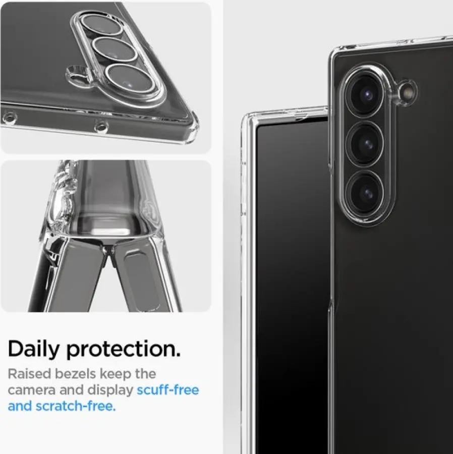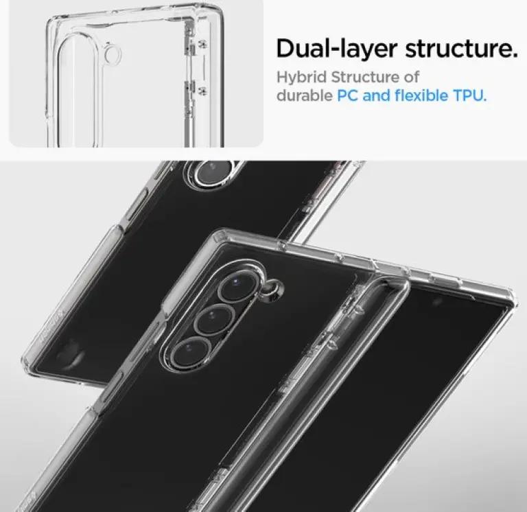 Met de SPIGEN Ultra Hybrid Pro hoes geniet je van het transparante design van je Samsung Galaxy Z Fold 6 zonder in te leveren op bescherming. Deze back cover combineert een harde polycarbonaat achterkant met een flexibele TPU bumper, waardoor je telefoon goed beschermd is tegen dagelijkse stoten en krasjes.