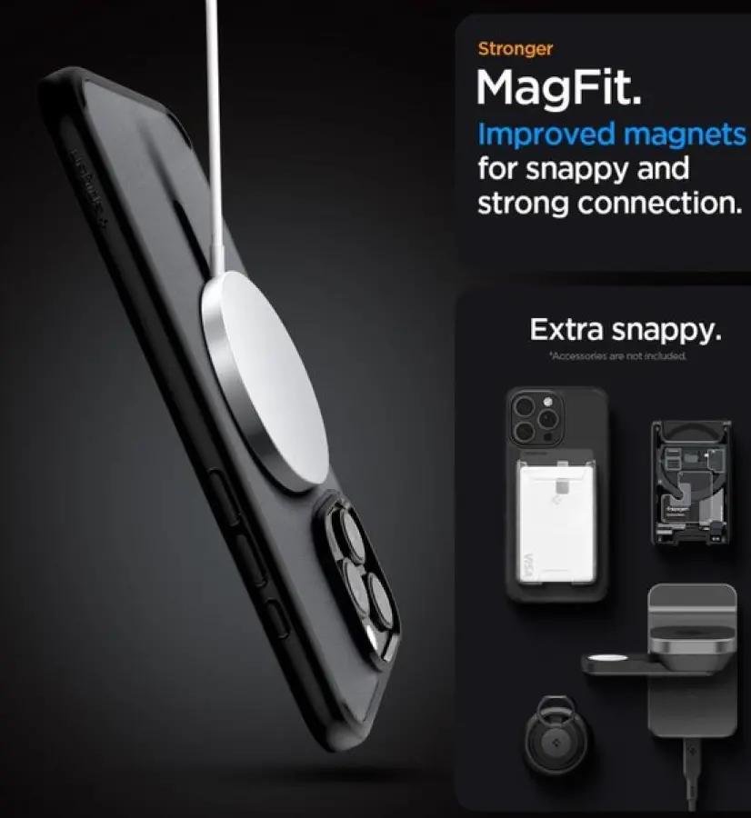 Dankzij de ingebouwde magneet is de Spigen Ultra Hybrid hoes volledig compatibel met Apple MagSafe. Zo kun je eenvoudig MagSafe accessoires zoals een oplader of kaarthouder magnetisch bevestigen op de achterkant van je telefoon. Dit maakt het gebruik van extra accessoires extra handig zonder dat je de hoes hoeft te verwijderen.