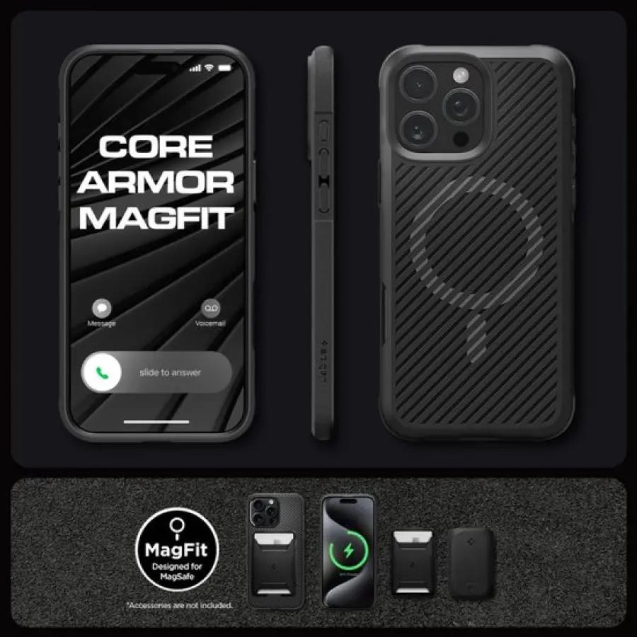 De Spigen Core Armor MagFit is speciaal ontworpen voor je Apple iPhone 16 Pro. Dit hoesje biedt een stevige bescherming zonder onnodige extra's. Dankzij het flexibele TPU-materiaal is het hoesje makkelijk te plaatsen en past het perfect om je telefoon. De matte achterkant met een stoere carbon textuur geeft je telefoon een moderne en mechanische uitstraling die zeker in het oog springt.
