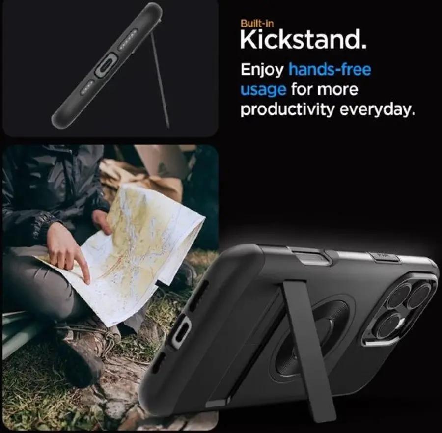 De ingebouwde magneet maakt het mogelijk om MagSafe accessoires eenvoudig op het hoesje te klikken. Zo laad je je telefoon draadloos op of bevestig je andere handige accessoires zonder gedoe. Bovendien heeft het hoesje een uitklapbare standaard aan de achterkant. Hiermee zet je je telefoon horizontaal of verticaal neer, ideaal om handsfree te videobellen of een serie te kijken.
