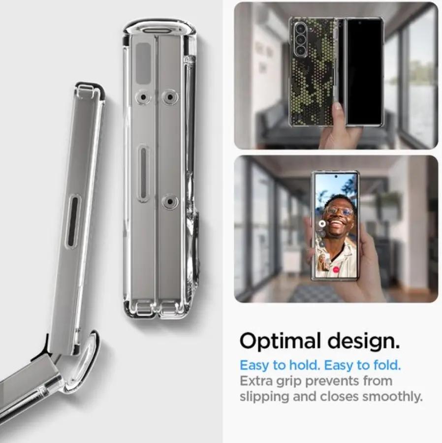 Met de SPIGEN Ultra Hybrid Pro hoes geniet je van de elegante uitstraling van je Samsung Galaxy Z Fold 6 dankzij het transparante ontwerp. Deze back cover combineert een stevige polycarbonaat achterkant met een flexibele TPU bumper, waardoor je telefoon niet alleen mooi blijft, maar ook goed beschermd is.