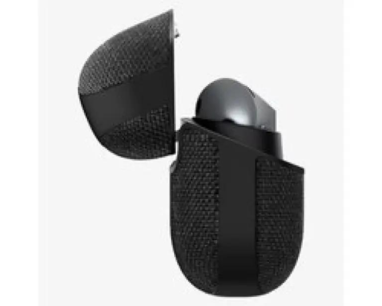 De buitenkant van het hoesje is gemaakt van een combinatie van gebreide stof en een polycarbonaat schaal. Dit zorgt niet alleen voor een stijlvolle en minimalistische look, maar ook voor sterke bescherming. De binnenzijde is bekleed met zachte microvezel, zodat je oplaadcase schoon blijft en niet krast. Zo blijven je oortjes er altijd als nieuw uitzien.