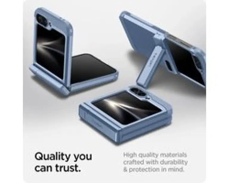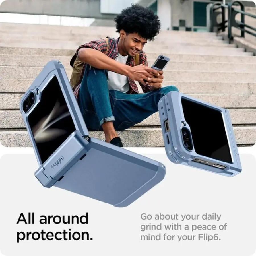 De Spigen Tough Armor Pro is speciaal ontworpen voor de Samsung Galaxy Z Flip 6 en biedt een krachtige bescherming zonder onnodig volume toe te voegen. Het hoesje is opgebouwd uit drie verschillende lagen die samen zorgen voor een stevige verdediging tegen dagelijkse gevaren zoals vallen, stoten en krassen.