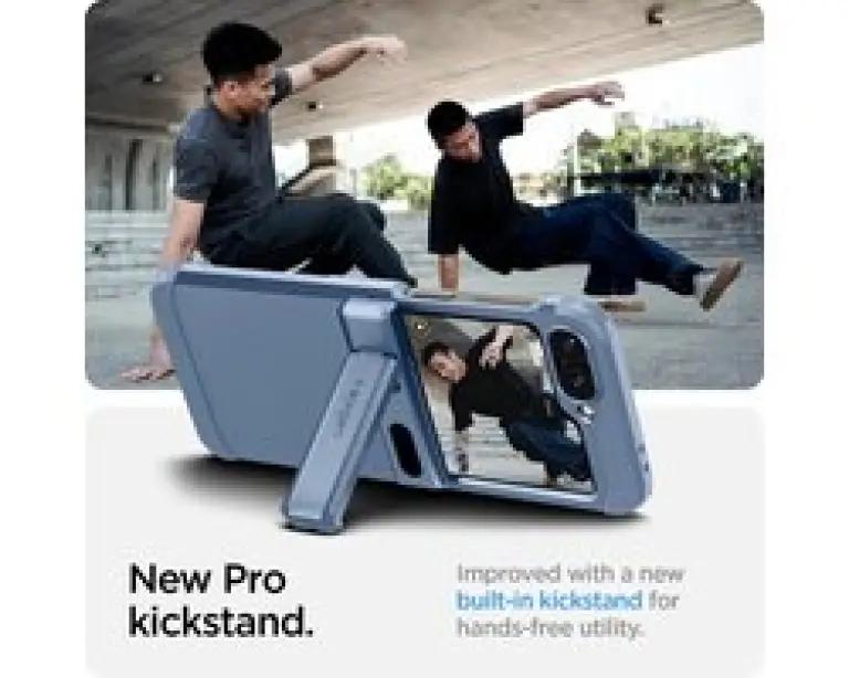 De Tough Armor Pro hoes heeft een slimme uitklapbare kickstand aan de achterzijde. Hiermee kun je gemakkelijk handsfree videobellen of comfortabel series kijken, zonder je telefoon vast te hoeven houden. Ideaal voor wanneer je je handen vrij wilt hebben.