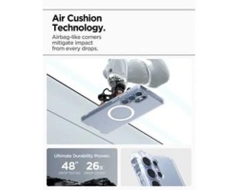 Elke hoek van het hoesje bevat de Air Cushion Technology™, wat samen met de militaire standaard certificering zorgt voor een allround bescherming tegen schokken en stoten. Hierdoor blijft je Samsung Galaxy S25 Ultra goed beschermd, zelfs bij onverwachte botsingen.