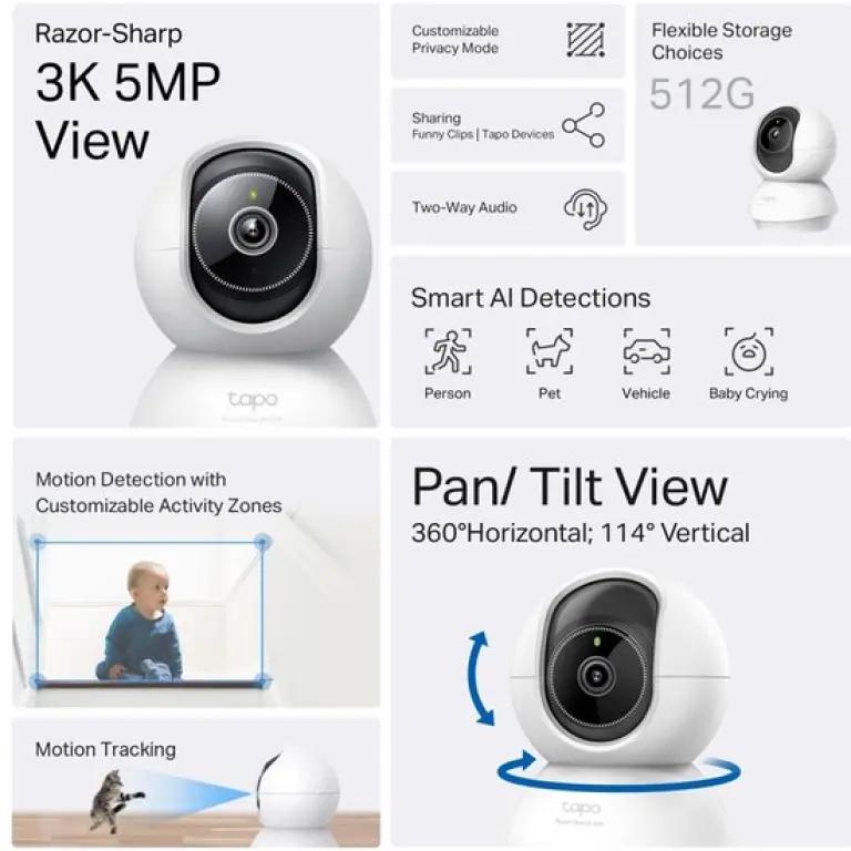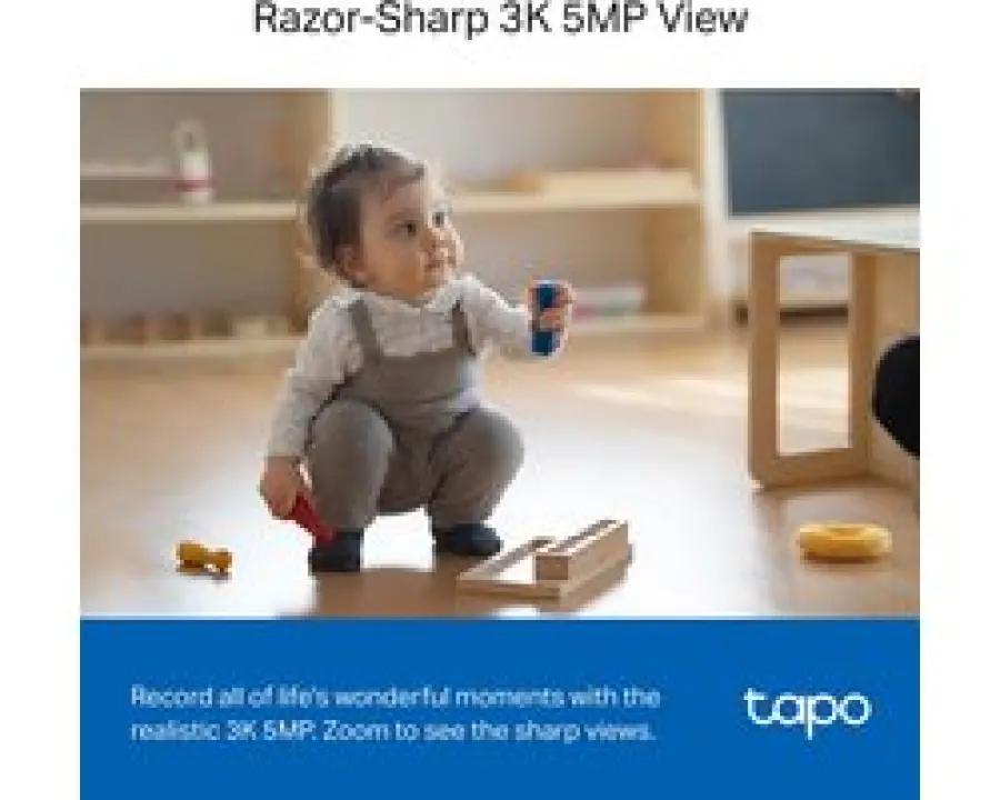 De TP-Link Tapo C230 is een slimme beveiligingscamera voor binnen die je huis scherp en duidelijk in beeld brengt. Dankzij de uitzonderlijke 3K 5MP resolutie (2880x1620) zie je elk detail haarscherp. Of het nu dag of nacht is, met het duidelijke nachtzicht mis je niets, zelfs in het donker.