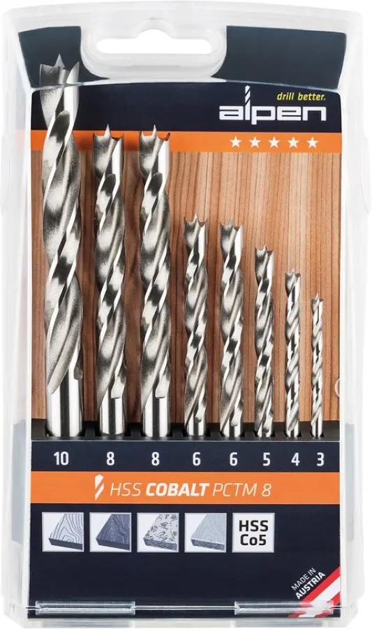 De Alpen HSS-Co5 PCTM 8-delige houtspiraalboorset is gemaakt van een hoogwaardige 5% kobaltlegering. Dit materiaal zorgt voor een zeer hoge thermische belastbaarheid, waardoor je langdurig en intensief kunt boren zonder dat de boren snel slijten of oververhit raken. Ideaal voor zowel zacht als hard hout.