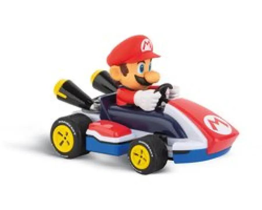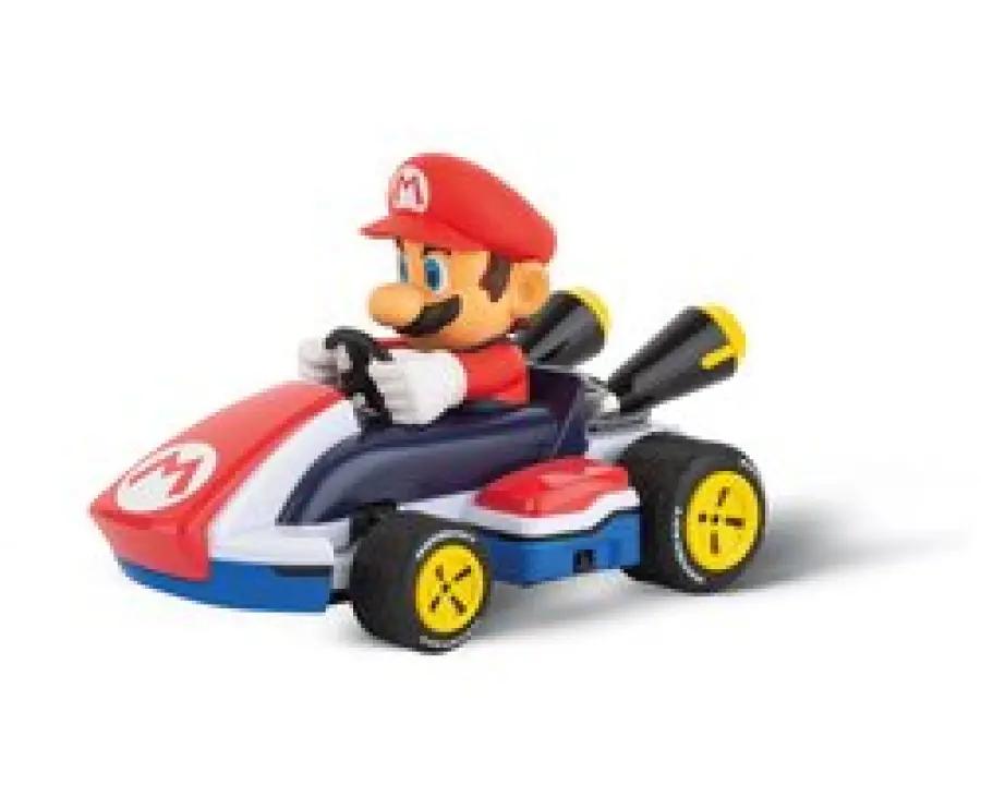 Met de Carrera RC Mario Kart Race Kart - Mario op schaal 1:32 beleef je echte Mario Kart spanning in miniatuurvorm. Deze compacte kart van slechts 12 cm lang is perfect voor binnengebruik, of je nu een uitdagend parcours in de woonkamer maakt of een snelle race op tafel houdt. Mario staat klaar voor actie en jij ook!